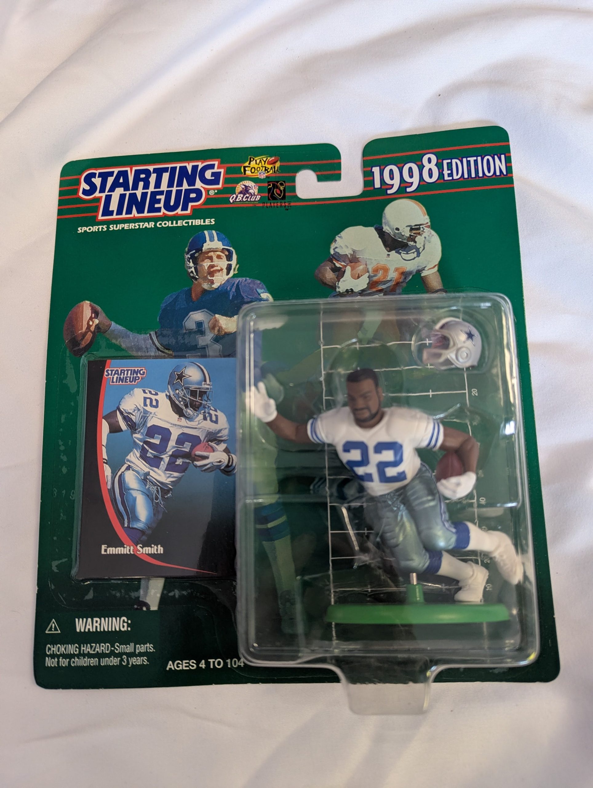 A Starting Lineup Emmitt Smith Collectible Action Figure in original packaging. A must‑have for Cowboys fans, NFL enthusiasts, and collectors of vintage sports memorabilia. Value:$15 Donated by Ashely Creamer